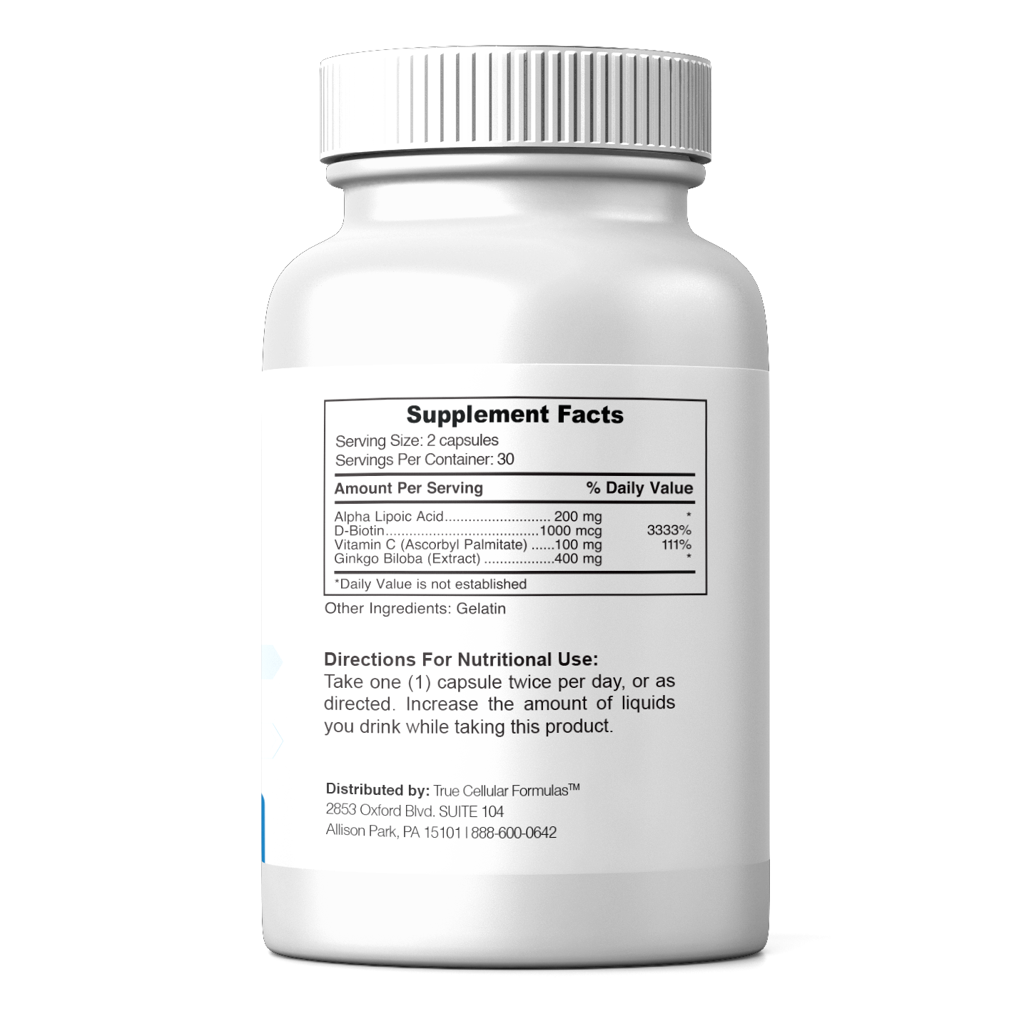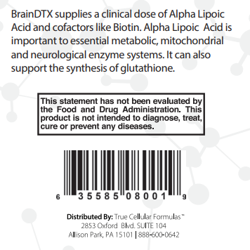 Experience cognitive enhancement like never before with BrainDTX by True Cellular Formulas. Our cutting-edge formula provides a clinical dose of Alpha Lipoic Acid, a potent antioxidant and cofactor for essential metabolic, mitochondrial, and neurological enzyme systems. Alpha Lipoic Acid plays a crucial role in supporting overall brain health.